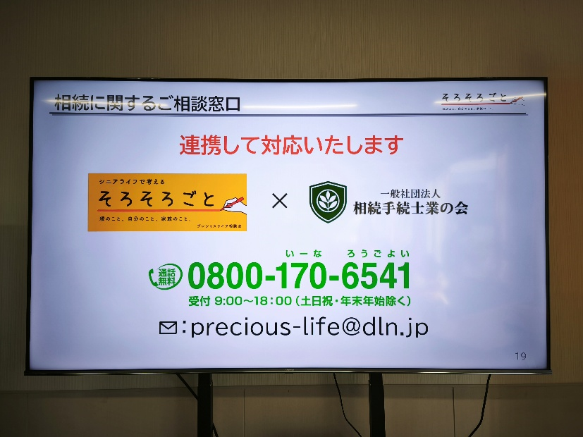 福岡県の北部に位置するマンション「リベーラガーデン」施設内にて、シニアライフセミナー「そろそろごと」という介護・老人ホーム・相続に関するセミナーが行われました。